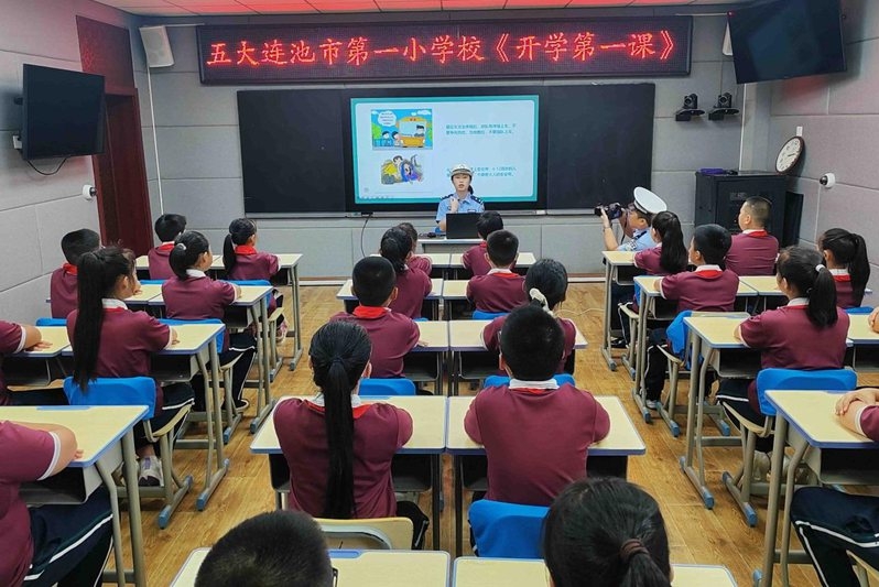 五大連池市公安局反恐與交巡特警大隊(duì)“交通安全第一課”走進(jìn)校園