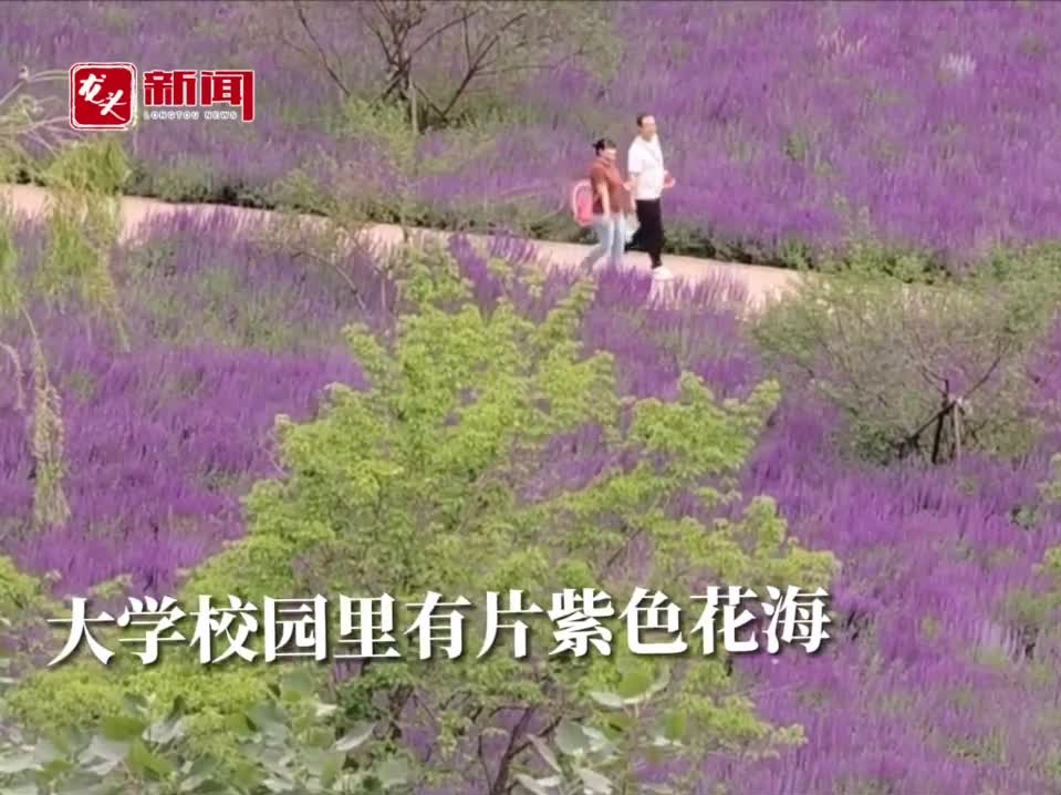 大學校園里有片紫色花海