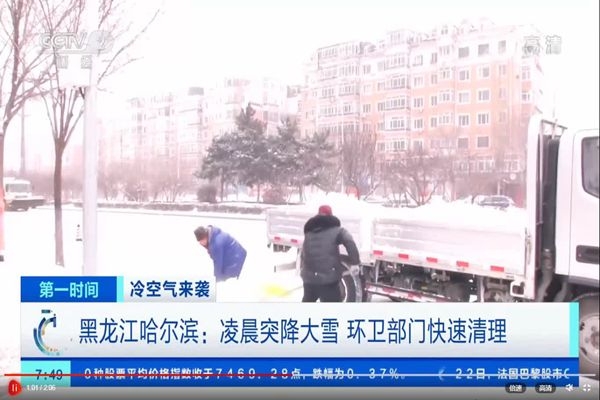 黑龍江哈爾濱:凌晨突降大雪 環衛部門快速清理