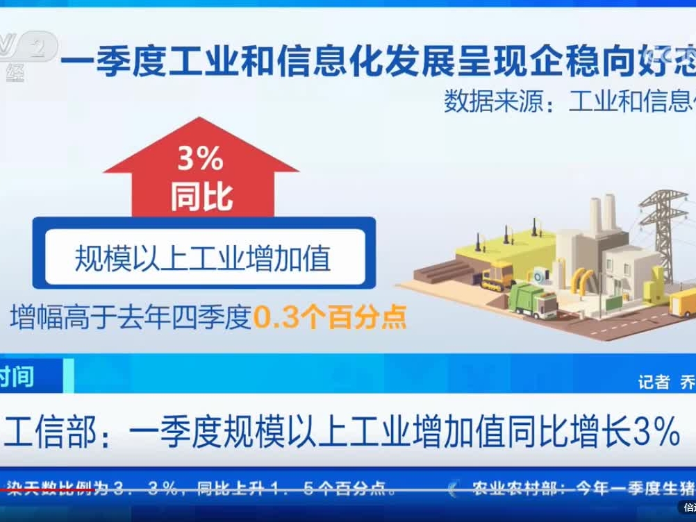 工信部:一季度規模以上工業增加值同比增長3%