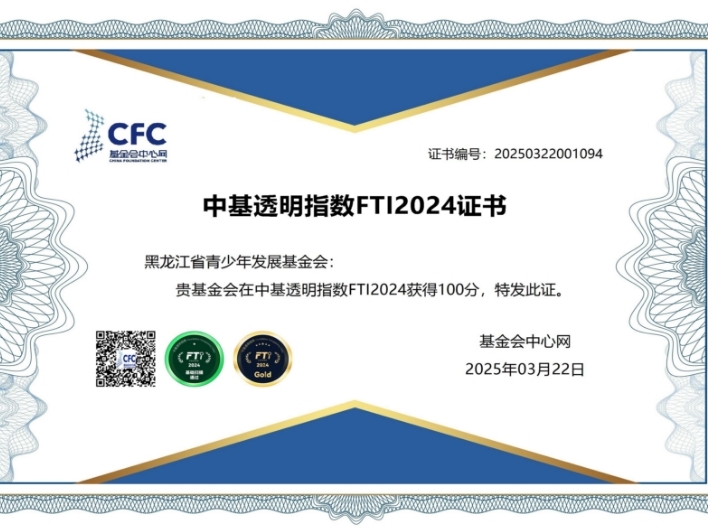 黑龍江省青少年發展基金會再獲“中基透明指數FTI2024”滿分