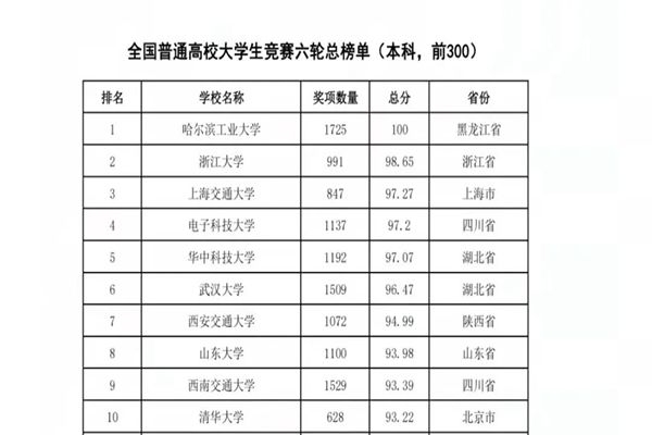 哈爾濱工業大學連續三年獲得全國普通高校大學生競賽榜單冠軍