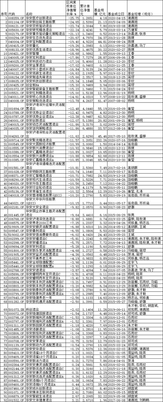 其中,基金經理謝昌旭所管理的3只基金墊底,華安醫療創新混合(008359)、華安新絲路主題股票(001104)、華安雙核驅動混合(006121)節后分別虧損25.75%、24.65%、23.74%。