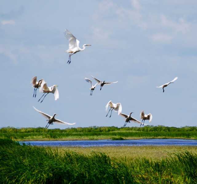 富錦國家濕地公園地處三江平原腹地,佳木斯富錦市西南40公里處,這里保存完好的原始濕地是東北亞地區重要的水鳥遷徙停棲地,每年都有數十萬只水鳥在此停留棲息。其中,國家一級保護野生動物有丹頂鶴、白頭鶴、東方白鸛等6種,國家二級保護野生動物白枕鶴、大天鵝等28種。