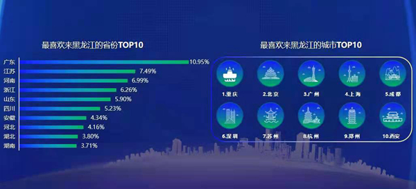黑龍江省依托資源優勢,發揮政府和市場作用,充分調動群眾參與的積極性。大數據顯示,好風光不只是龍江人在用視頻記錄,來自全國一線省份、城市的游客也喜歡來黑龍江旅游,其中,游客以冬季游、四季游等標簽,被黑龍江的好風光實力“圈”粉。根據數據,2020年在抖音平臺,最喜歡來黑龍江的省份統計,排在前十的省份是廣東、江蘇、河南、浙江、山東、四川、安徽、河北、湖北、湖南。