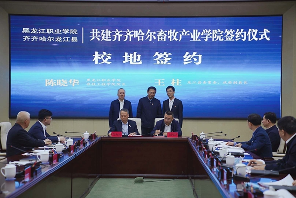 據了解,此次合作也是龍江縣委、縣政府著眼于產業發展需求,圍繞“服務企業、為企業辦實事”這一主題,深入開展“我為群眾辦實事”實踐活動的一項重要舉措,通過為企業發展服務,積極推動企校政三方協作,以畜牧人才培養和科技成果轉化為功能定位,共建畜牧產業學院運營后,將立足縣域發展,服務齊齊哈爾全市產業,輻射龍江西部,在高技能人才引進、人才培養、技術研發等方面開展廣泛合作,實現“地方留才、企業引才、高校育才”協同聯動的目標,為齊齊哈爾市畜牧產業高質量發展注入強大的人才和科技動力。