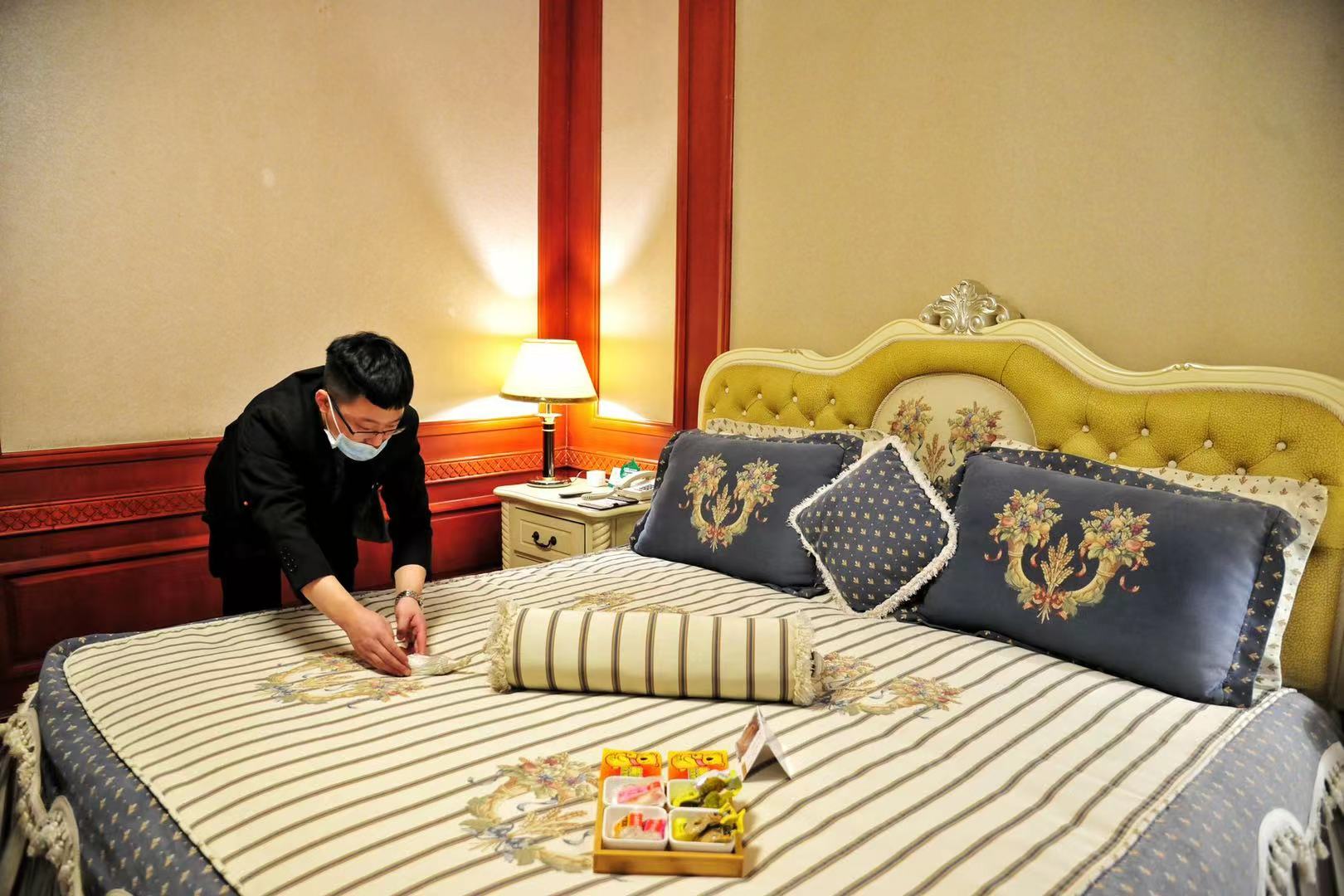 邱冬梅說,為了保證賓客住得安心放心,賓館在疫情防控和安保方面提前做了很多針對性的工作。進入4月初就組織全體員工開展業務知識及專業技能、酒店禮儀、員工儀容儀表等崗位技能培訓。