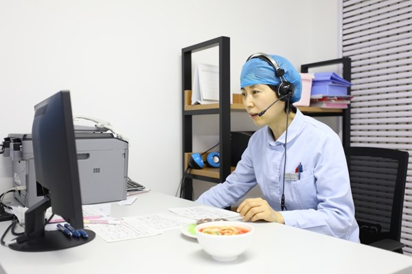 王磊副主任(左一)正在與產婦溝通整體康復治療計劃