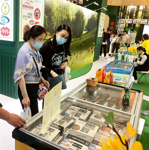 大莊園肉業集團股份有限公司展臺前,40多歲的王女士說起新冠肺炎疫情期間該公司的幾公里免費配送服務,“每次收到身穿防護服的工作人員送來放心的牛羊肉制品,心里都充滿感激之情。”