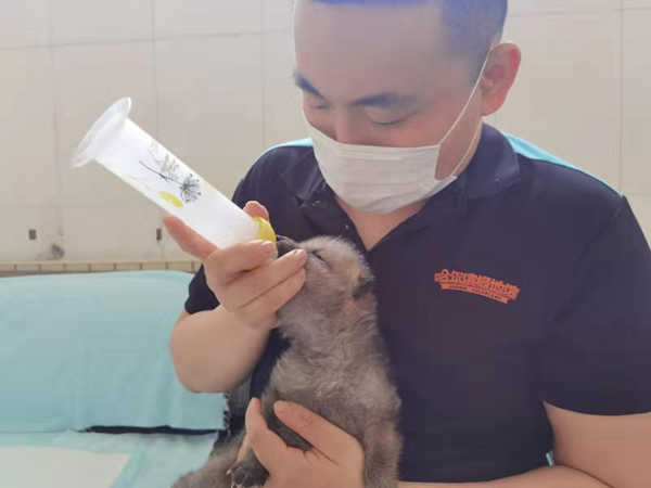 據工作人員介紹,5月上旬,哈爾濱極地公園北極狼家族新生多只北極狼寶寶。為保證母狼和新生小狼的安全,馴養師24小時通過監控觀察北極狼媽媽和寶寶的情況。三天后,一只狼媽媽出現奶水不足、棄養小狼的情況。為保證狼寶寶的安全,馴養師決定將狼寶寶采用全人工技術飼養,取得了成功。