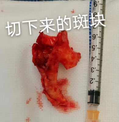 考慮到張大爺既往有腦梗死病史和糖尿病病史,入院后,孫國章副主任團隊為張大爺進行了術前精準評估,完善頭部核磁共振、全腦血管造影檢查,并控制好血壓、血糖等各項指標。隨后,孫國章副主任在顯微鏡下精準為張大爺實施了頸動脈內膜剝脫術,切除了長度約4cm動脈粥樣硬化斑塊。據了解,由于是在頸動脈上做手術,對手術技術及條件要求非常高,孫國章副主任在術中克服種種困難,才最終憑借豐富的臨床經驗成功完成此次手術。