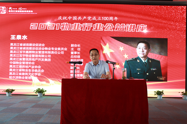 黑龍江省誠信建設促進會物業專業委員會主任、黑龍江寶宇物業公司總經理 王泉水以《后疫情時代如何更好的開展物業服務》為題做了專題講座。王泉水曾帶領全體員工連續創建國家示范項目4個、省級“十佳”項目5個,其他管理項目全部創建為省級項目,先后在全省講授物業課18次、聽眾3000余人,經常接到物業人的電話和微信對相關事務的解答、解釋并給予指導和幫助。