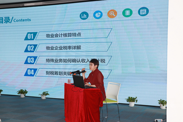 哈爾濱匯智財會學校校長、哈爾濱匯知財務咨詢有限公司總經理劉宏誼做了《新經濟時代物業企業財稅籌劃要點》講座。劉宏誼圍繞物業會計核算特點、物業企業稅率詳解、特殊業務如何確認收入和計稅、財稅籌劃關鍵要點等方面,從最新政策出發,通過大量實際案例分析,為大家詳細生動的講解了物業企業在生產、經營活動中出現的各種稅賦、成本、個稅等實際問題,以及稅收籌劃的手段及必要性。