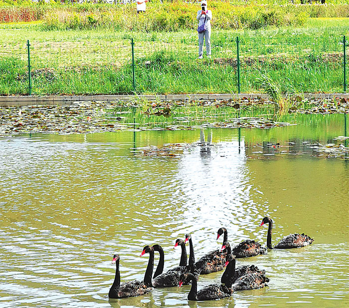 據大慶市城投公司蘭德湖公園管理處主任孟維凱介紹,這是大慶首次引進黑天鵝,一共有10只,都是澳大利亞品種,5月25日傍晚剛放養到湖里。下一步,蘭德湖公園將陸續建設供天鵝棲息的小屋,并投入觀光游艇、腳踏船、觀光車、游樂設施等,為市民打造新的旅游打卡地。