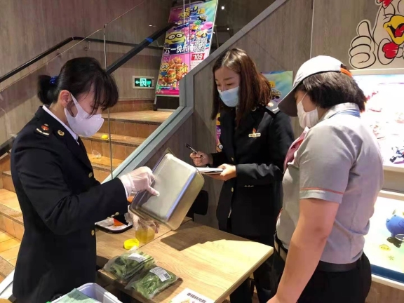 自5月25日起,黑河市市場監管局組織檢驗檢測人員針對兒童歡迎的肯德基、華富商城附近5家奶茶店等餐飲單位開展專項快檢行動。快檢人員共抽取肯德基的雞米花、雞腿肉、煎炸用油、黃瓜、青椒、生菜以及奶茶店的果汁等樣品12個批次,嚴格按照操作規程對氯霉素、酸價、農藥殘留和二氧化硫等項目進行檢測,快檢結果當場公布。