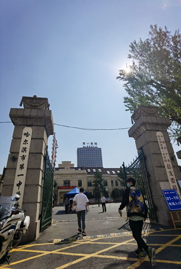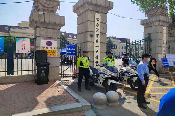 今早8點,哈爾濱市第一中學門前雖然人頭攢動,但車減速,人低語。