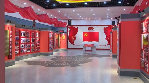 展廳中央懸掛著鮮艷的中國共產(chǎn)黨黨旗。在趙萬山領(lǐng)誓下,大家面對黨旗,舉起右手,重溫入黨誓詞。