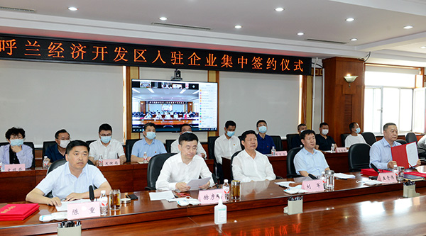 黑龍江經濟網訊(白銘波 記者 王振紅)6月12日,哈爾濱市呼蘭區舉行入駐經濟開發區企業集中網上簽約儀式。來自中國食品工業協會、北京鳳凰控股集團、華電能源哈三電廠、哈爾濱九洲集團股份有限公司、上海華升石墨有限公司、北京大有匯金環境科技有限公司、武漢光谷節能科技有限公司、哈爾濱市廣東潮汕商會、武漢麗島物業管理有限公司、武漢慧聯無限科技有限公司、黑龍江宸熙科技有限公司、蘇試試驗集團股份有限公司等12家企業和協會與呼蘭區政府簽訂了入駐呼蘭經濟開發區投資合作協議,簽約額達80.6億元。
