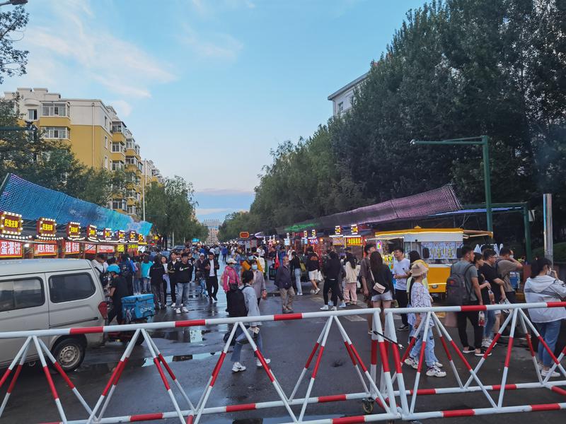 小王和女友來自交通學(xué)院,這兩個月已經(jīng)來這個夜市不下20次。小孫和女友來自哈工程大學(xué),是第一次來這里。小王說,他和小孫是老鄉(xiāng),都是齊齊哈爾市人,但他們女朋友都是外省人,一個來自天津,一個來自四川。“我們都愛吃美食,哈爾濱的知名夜市都逛遍了,這里真的不錯,物美價(jià)廉、干凈衛(wèi)生,不火都難,是吃貨就肯定會來。”