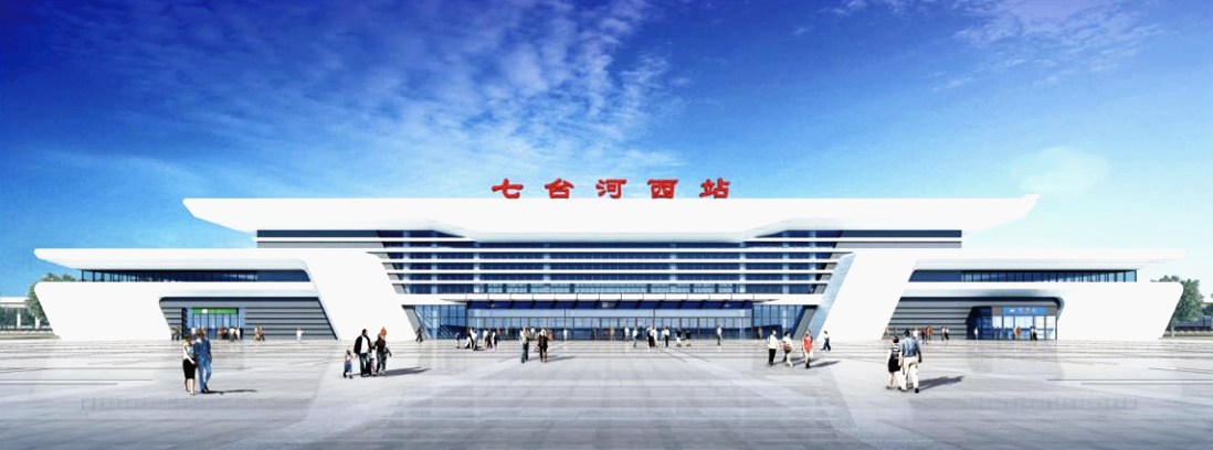 七臺河西站秉承“短道速滑,勝利之城”的設計理念。七臺河曾培養出了楊揚、王濛、范可欣等10位世界短道速滑冠軍,素有“寒地北藥”“焦煤之都”“中國冬奧冠軍之鄉”“中國短道速滑之鄉”之稱。因此,站房造型靈感來源于短道速滑運動,隱喻七臺河市短道速滑圣地的城市名片。車站主體與左右兩側造型,形成統一靈動的整體,隱藏的V造型。建筑中部采用橫向線條延伸至兩側,同時體現了交通建筑與速滑運動的融合。入口兩側的實體造型作為冰刀的抽象表達,與玻璃幕墻形成虛實對比。候車室屋頂裝飾以雪花及獎杯作為參照,獨具特色,實現了地方特色和現代建筑的交融。