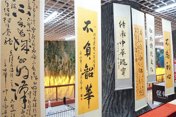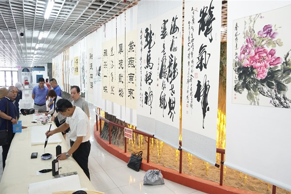 挽袖、研墨、調色、揮毫,書畫家們進行現場書畫創作并交流創作心得。以書言志、以畫寄情,一幅幅極富感染力的書法、繪畫作品,抒發了對黨的敬愛之情和對祖國的美好祝愿。活動現場共展出書畫作品百余件。