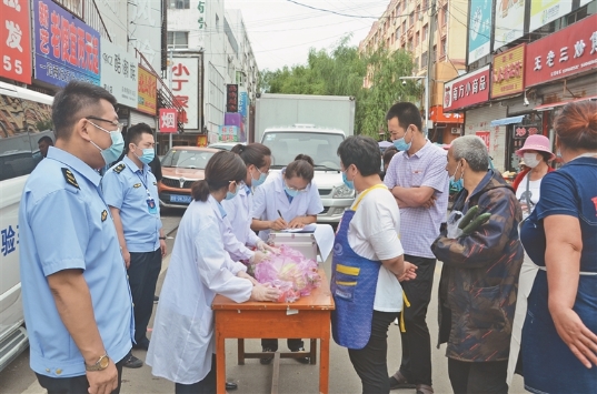 黑龍江日報訊(王宏濤 黑龍江日報全媒體記者 劉柏森)近日,密山市市場監督管理局將食品快檢車開進農貿市場,通過“你點我檢”方式,對市場上銷售的蔬菜、肉類進行現場快檢,讓群眾買的放心、吃的安心。