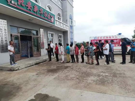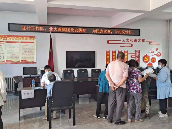 7月16日上午,兩臺120救護車駛進北安市城郊鄉新華村,這是駐村工作隊和農墾北安管理局中心醫院聯合開展的“為民辦實事。此次義診,農墾北安中心醫院派出內科、外科、心腦科、泌尿科、中醫科等7位坐診專家,攜帶血壓計、血糖儀、心電、彩超等便攜式醫療設備,為村民免費看病義診。