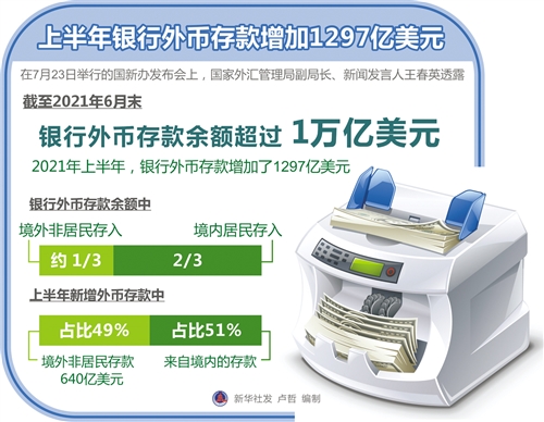 近日,國家外匯管理局披露的數據顯示,今年上半年,我國銀行的外幣存款不斷累積,4月份,外幣存款突破了1萬億美元大關。如何看待這一現象?