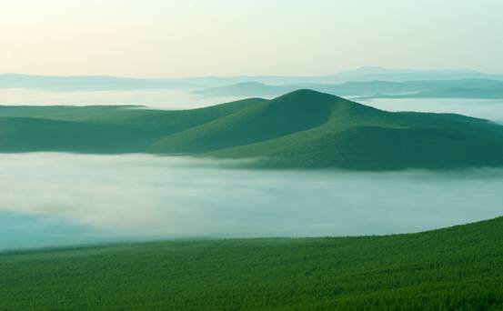 黑河地處大興安嶺東端,小興安嶺北部,境內群山連綿起伏,溝谷縱橫,地貌特征豐富:低山、丘陵、火山熔巖臺地、盆地、平原和河谷不一而足,就像一曲森林小夜曲,節奏自由、表現手法豐富,極富浪漫主義色彩。