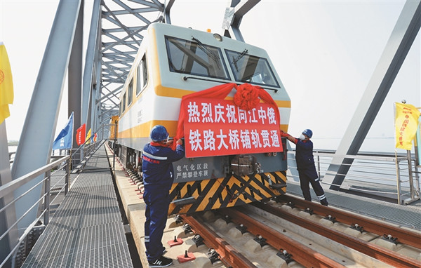 黑龍江日報17日訊(黑龍江日報全媒體記者狄婕 黑龍江日報全媒體見習記者王迪)17日9時58分,在同江中俄黑龍江鐵路大橋施工現場,中俄兩國準軌接口最后一組軌道夾板安裝完成,標志著中俄兩國首座跨江鐵路大橋——同江中俄黑龍江鐵路大橋實現鋪軌貫通,為大橋全線開通運營奠定了堅實基礎。