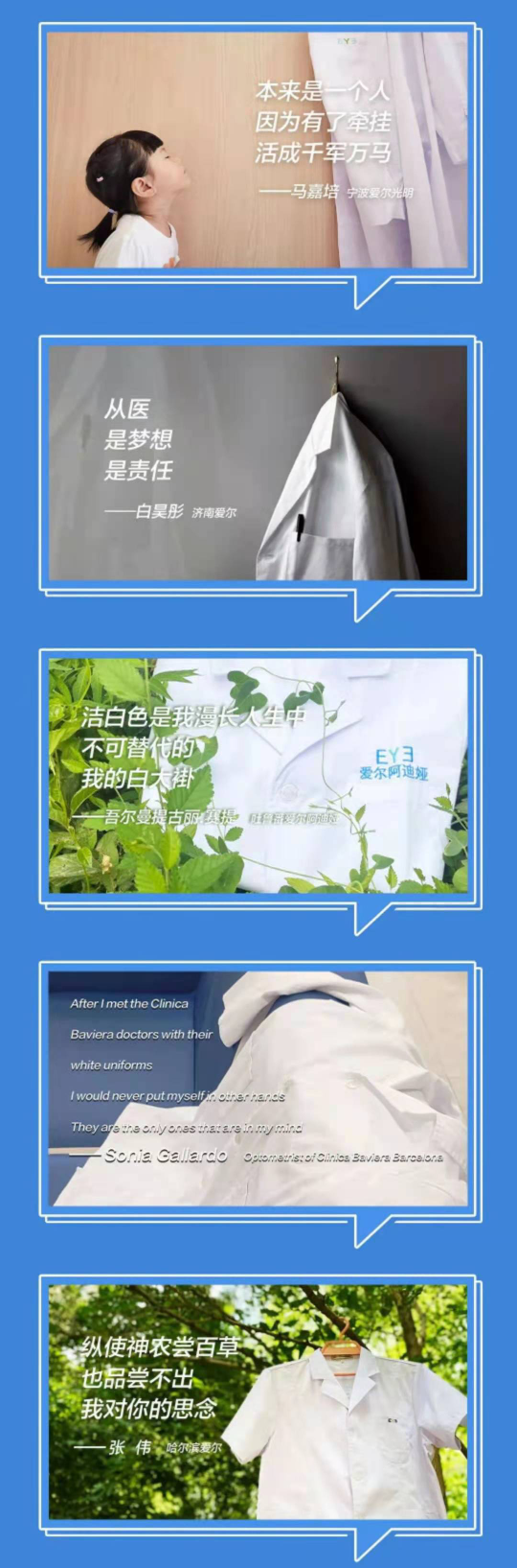 自2018年設(shè)立“醫(yī)師節(jié)”以來,醫(yī)師節(jié)已走過四個(gè)春秋冬夏。為感激白衣天使的辛勤付出,為致敬醫(yī)生家屬的默默支持,愛爾眼科特策劃《Hi,親愛的白大褂》系列活動(dòng)。在微電影展出中,用三個(gè)視頻,三個(gè)視角,展示那些不為人知的醫(yī)患故事,記錄那些點(diǎn)點(diǎn)滴滴的感動(dòng)與溫情。