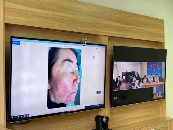 會診當天,在5G網絡高速率、大帶寬、低時延的傳輸下,黑龍江省醫院遠程醫療中心會議室大屏幕上,高清地顯示出了遠在4400公里外的新疆阿勒泰地區人民醫院會診室畫面,兩地醫生透過屏幕開展了清晰、流暢地交流。在聽取了新疆阿勒泰地區人民醫院醫生對一例皮膚病患者和一例內分泌科患者病情的介紹后,結合患者各項檢查結果,黑龍江省醫院皮膚病院皮膚一科魏娟主任和黑龍江省醫院內分泌科段濱紅主任分別對患者的病情進行了詳細分析和診斷,并給出明確、具體的治療方案和建議。本次遠程會診的成功實施,不僅使黑龍江省有效地對新疆阿勒泰地區開展醫療支援,使阿勒泰地區的病患受益匪淺,并為今后兩地的醫療交流打開新局面。