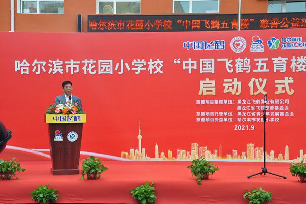 飛鶴乳業(yè)黨委書記、飛鶴慈善基金會(huì)理事長朱天龍在啟動(dòng)儀式上說,在中秋國慶即將到來之際,我們滿懷喜悅的心情,在百年名校哈爾濱市花園小學(xué)校舉行“中國飛鶴五育樓”公益慈善助教項(xiàng)目啟動(dòng)儀式,這是飛鶴乳業(yè)履行社會(huì)責(zé)任、情系教育事業(yè)的又一項(xiàng)助教工程。在黑龍江省貫徹落實(shí)黨中央“雙減”政策,深入推進(jìn)五育并舉,促進(jìn)學(xué)生德智體美勞全面發(fā)展的重要時(shí)期。飛鶴向哈爾濱市花園小學(xué)捐贈(zèng)625萬元,用于花園小學(xué)“五育樓”項(xiàng)目改造,這是一項(xiàng)利在當(dāng)代,功在千秋的公益慈善助教項(xiàng)目,旨在更好地優(yōu)化我省基礎(chǔ)教育教師學(xué)習(xí)培訓(xùn)環(huán)境,為花園小學(xué)教學(xué)提供更好的辦學(xué)條件,也是助力黑龍江省基礎(chǔ)教育的改革。省教育廳副廳長姜同河、團(tuán)省委副書記張濤對(duì)飛鶴乳業(yè)的慈善助教善舉給予充分的肯定和贊許。花園小學(xué)校長曹永鳴代表學(xué)校的孩子們向飛鶴乳業(yè)的慈善捐助表達(dá)深深的謝意!