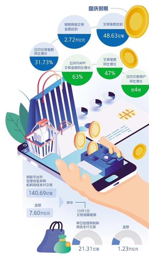 與柳葳有同樣想法的消費者不在少數。中國銀聯發布2021年國慶假期銀聯網絡交易數據顯示,國慶假期,銀聯網絡交易金額達到2.72萬億元,交易筆數達到48.63億筆,日均交易筆數同比增長31.73%。“吃、住、行、游、娛、購”是假期消費主力。其中,購物、餐飲、景區售票方面的國慶假期日均消費金額較去年國慶假期日均消費金額同比分別增長了31%、28%、24%。分地區來看,海南、甘肅、西藏等地交易金額增幅居前,成為假期出行的熱點地區。中國銀聯數據分析師胡偉分析說:“今年國慶期間,航空、鐵路、租車和加油等與出行相關的消費均處于恢復態勢。租車尤其受到消費者青睞,成為出行新潮流。”