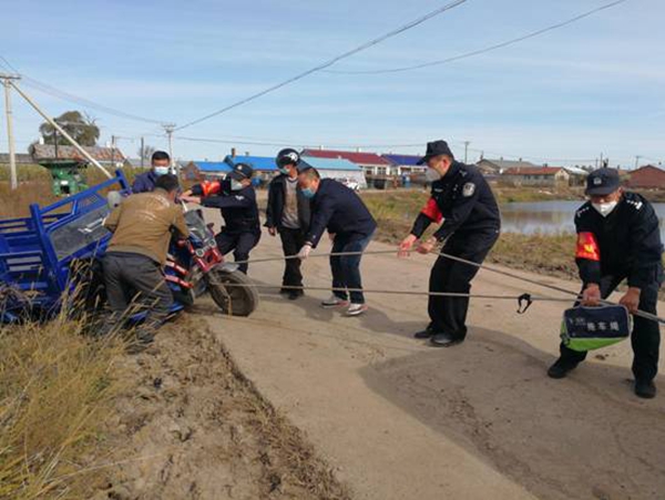 防疫就是責任!率先垂范、指揮若定,答好“業務題”。“井局長,看到你們,我們就放心了!”巴彥縣農村有18個鄉鎮,107個行政村,1276個自然屯,3056戶居家隔離戶,50余萬的農村常住人口。面對地形如此之大、人員如此之多,管理難度如此之高的農村社會面封控任務,井立軍臨危不亂、思路清晰,將航運分局、地鐵分局、禁毒支隊的41名同志分成20個巡邏組,制定摸排基礎情況計劃、建立各鄉鎮微信工作群計劃以及制定“三地兩點一環節”工作主線,不斷提升隊伍的向心力、戰斗力、執行力、凝聚力。與此同時,井立軍不斷創新工作方法,根據防疫形勢的改變不斷調整工作模式,指導錄制的巡邏警示音頻通過巡邏警車、村屯廣播站宣傳的面很廣泛,得到極好的宣傳效果。工作期間,全天帶隊對巴彥縣農村人員聚集地、農村秋收地、牲畜圈養地、居家隔離點、村屯卡點、無公害處理環節進行檢查。巴彥縣農村各鄉鎮村屯、田間地頭,都留下了井立軍忙碌的身影。
