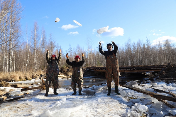 阿木爾林業局多種經營公司職工表達新建水毀橋梁通車的興奮之情。