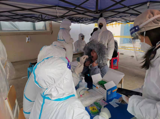 該院趙志蓮、趙愛鈺等十名醫護人員積極響應號召,無懼嚴寒,牢記醫者的初心與使命,奔赴鳳凰城社區、森林名苑社區、鐵路小學等核酸采集點,用她們嬌小柔弱的肩膀扛起了一份擔當!