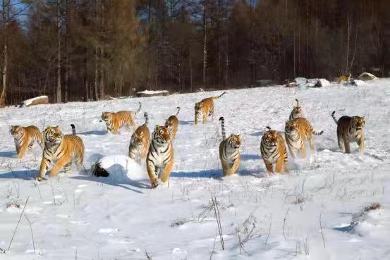 令人震撼的鏡泊湖吊水樓的冰瀑是牡丹江冬季的重要景點之一。在冰凌交錯、銀裝素裹的純凈世界里,世界吉尼斯紀錄創造者——中國懸崖跳水奇人狄煥然,在零下二十多度的鏡泊湖吊水樓冰瀑上,伸展雙臂,凌空一躍,撲向不結冰的黑龍潭水面,跳入落差近20米的水中,成為鏡泊湖景區冬季的一道獨特景觀。鏡泊湖水系水質較好,水產資源極為豐富,大約有六十多種魚,冬季體驗鏡泊湖的大網捕魚、小網掛魚,在每年辭舊迎新之際看一場冬捕,絕對是預示著年年有余好兆頭的絕佳體驗。在漁夫們高亢的號子聲中,800多米長的大網從冰洞中漸漸滑出,胖頭魚、鯽魚、鯉魚等翻滾著、跳躍著,冒著熱氣蹦到冰面,“萬尾鮮魚出玉門”的奇觀景象讓人感嘆不已。橫道東北虎林園是世界上最大的東北虎人工飼養繁育基地和野化訓練基地。在幾代養虎人的辛勤努力下,已繁育活體東北虎1100余只,建有猛虎園、靈長類館、幼虎生態館、高空玻璃棧道、珍稀動物觀賞園、科普展覽館、觀虎長廊、虎文化廣場等多個景點。在這里,可以感受到獸中之王奔跑在蒼茫林海雪原的風馳電掣。也可以感受到成群東北虎躺臥在皚皚白雪“互談心事”的百般愜意,還可以領略到虎牛相斗、群虎撲食的驚險刺激。