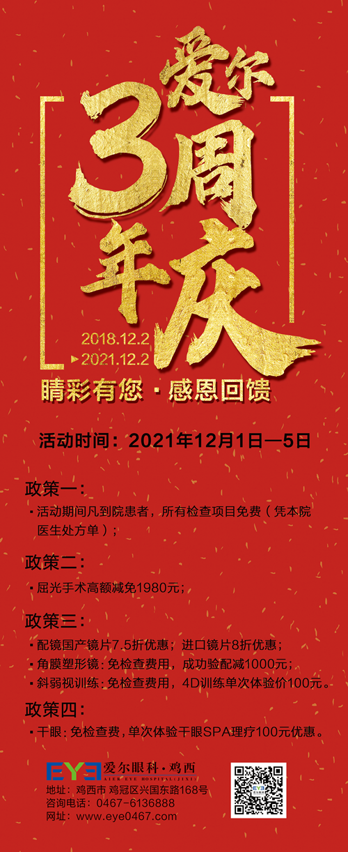 祝雞西愛爾眼科醫院三周年生日快樂!