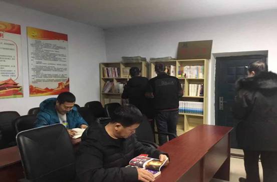 黨員干部們在會議室認真閱讀黨刊黨史等書籍。互相交流讀后心得體會,感悟革命前輩事跡的偉大歷史。發揚革命先進事跡,做新時代接班人。