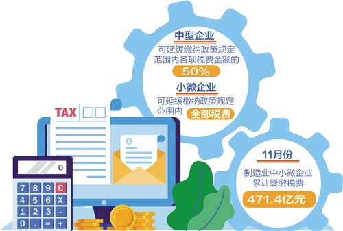剛剛過去的11月是制造業中小微企業階段性稅收緩繳政策實施首月。12月1日,國家稅務總局發布統計數據顯示,這項政策實施效果顯著,制造業中小微企業已累計緩繳稅費471.4億元。