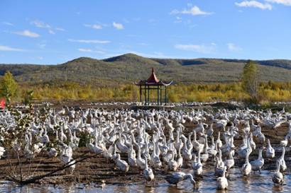 新林林業局依托當地水草豐美的生態環境優勢,扶持開展“生態鵝”養殖項目,為職工開拓了增收致富的新途徑(崔紅霞 攝)