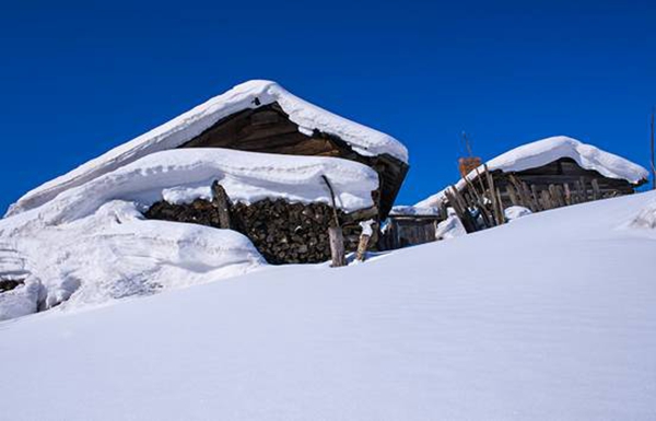 這里的降雪期長達半年,每年累積降雪厚度達2米,獨特的小氣候造就了隨物賦形的雪檐,千姿百態的雪簾,變化多端的雪蘑菇,只有到了這里,才能領略到山舞銀蛇,原馳蠟象,欲與天公試比高的冰雪奇觀。積雪在風力的作用下其狀好似奔馬、臥兔、神龜、巨蘑……千姿百態,仿佛是天上的朵朵白云飄落。 雪村人在自家掛起大紅燈籠,潔白如玉的白雪在大紅燈籠的映襯下,溫柔喜慶,幻化無窮。