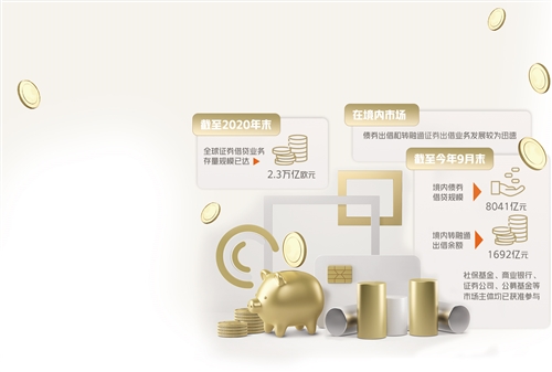 證券出借業務俗稱“融券”,是境內外資本市場提高二級市場流動性的常見交易制度,發展較為成熟。截至2020年末,全球證券借貸業務存量規模已達2.3萬億歐元。在境內市場,債券出借和轉融通證券出借業務發展較為迅速,截至今年9月末,境內債券借貸規模8041億元,境內轉融通出借余額1692億元,社保基金、商業銀行、證券公司、公募基金等市場主體均已獲準參與。