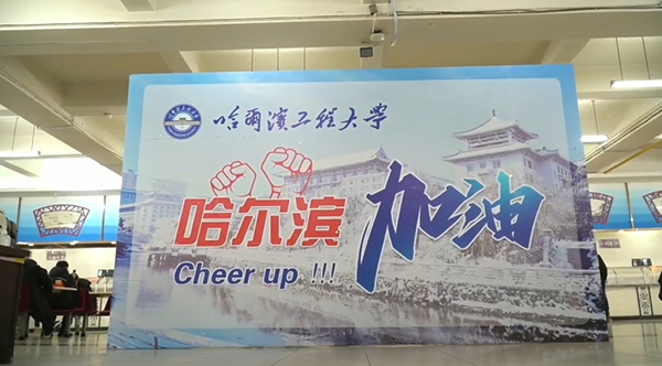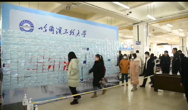 雖然疫情期間,學校處于封閉狀態,但是哈工程的師生們用自己的方式為抗疫助力。在哈工程飲食中心的展板上以“程心程毅,抗疫有我”為主題,舉辦了一場千人取口罩的活動,學生們有序地保持間距,當口罩全部取下的時候,“哈爾濱加油”幾個字慢慢呈現,口罩的背面還有飲食中心準備的小驚喜,提供各種兌換券,現場的師生被展板上暖心鼓勵的話語和獨特的方式所感動。