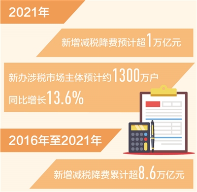 “2021年,稅務部門統籌推進減稅降費和組織收入,圓滿完成預算確定的收入任務,更好激發市場主體活力、保障國家財力,全年新增減稅降費預計超1萬億元。”國家稅務總局主要負責同志在近日召開的全國稅務工作會議上表示,2016年至2021年新增減稅降費累計超8.6萬億元,宏觀稅負由2012年的18.7%預計降至2021年的15.2%左右。2021年以來,減稅降費政策繼續發力,助企減負紓困取得積極成效。