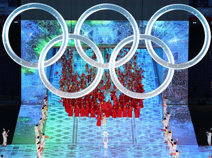 中國代表團旗手高亭宇(右)。 新華社記者 徐子鑒攝