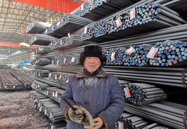 在鋼材成口庫,一位身穿工裝大棉襖、頭戴棉帽,捂得嚴嚴實實,臉色微紅的,帽沿掛滿了霜的工人十分引人注目。他叫朱世軍,是軋鋼廠發運作業區丙班的一名普通司索操作員,初一正是白班,主要負責鋼材裝運掛鉤和為火車車皮用鐵線鎖車門工作,一但發運繁忙時,無論白班還是夜班都得在室外作業裝車,企業鋼材就靠他們配合裝上火車發往市場的?!敖裉斓冒l運鋼材110車左右,每天上班,在成品庫得上上下下,得走好幾里地,今天就挺冷啊,最低零下26度,冷風吹的嘴都木了,既使戴著棉手套,手也都凍僵了,但是,每天一想到通過我的努力,把建龍西鋼鋼材發往全國各地,為建龍西鋼美好企業建設做貢獻,我雖然冷點但心里熱乎乎的,真心感到驕傲和自豪。