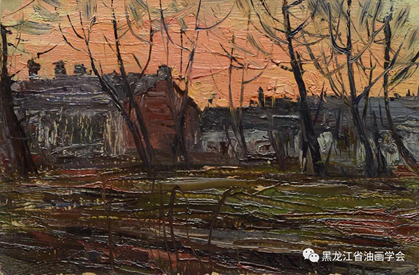 《夕陽(yáng)入火》12.6×17.8cm 紙本油彩 1958年