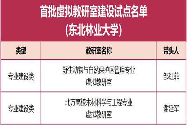 黑龍江經濟網訊(黑龍江日報全媒體見習記者董廣碩 商祺)近日,教育部公布了首批虛擬教研室建設試點名單,東北林業大學野生動物與自然保護區管理專業虛擬教研室、北方高校木材科學與工程專業虛擬教研室獲批首批虛擬教研室建設試點。